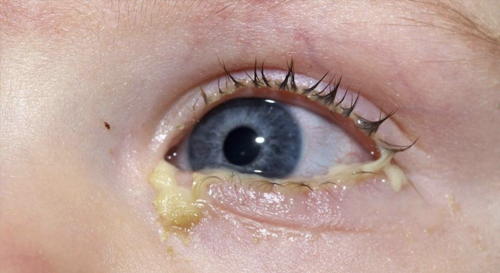- Formación de costra en las pestañas durante la mañana y, posiblemente, ojos cerrados, ya que la secreción actúa como pegamento.